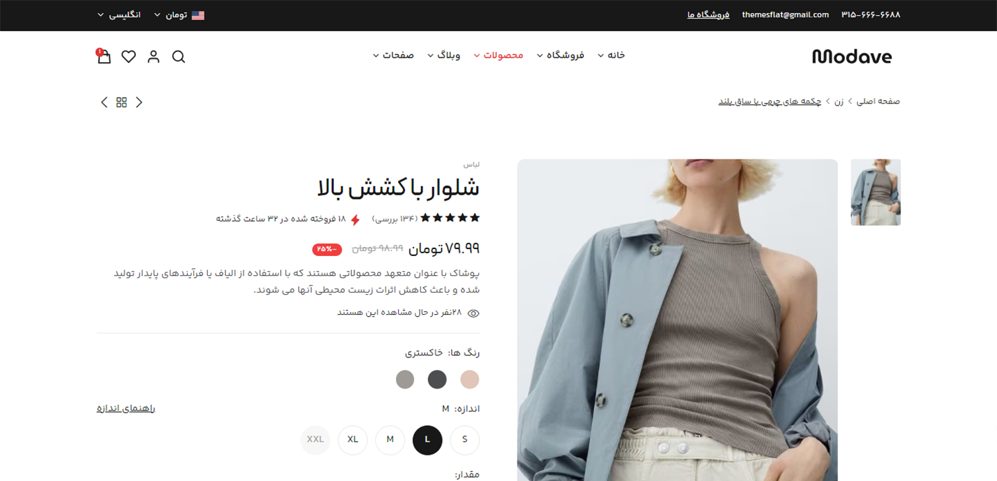 Modave از انواع مختلف سبک کارت برای نمایش محصول با ویژگی ها و ویژگی ها پشتیبانی می کند