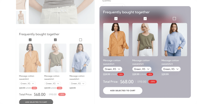به صاحبان فروشگاه اجازه می دهد تا قبل و بعد از تصاویر محصولات را نمایش دهند.این عکس های مقایسه درست در صفحه محصول ، در منطقه تصویر معمول ارائه می شود.