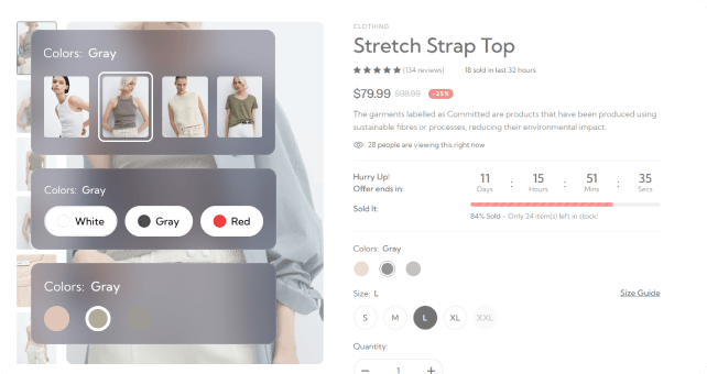 بصری گزینه هایی مانند رنگ یا اندازه را نشان می دهد ، و تجربه کاربر را افزایش می دهد